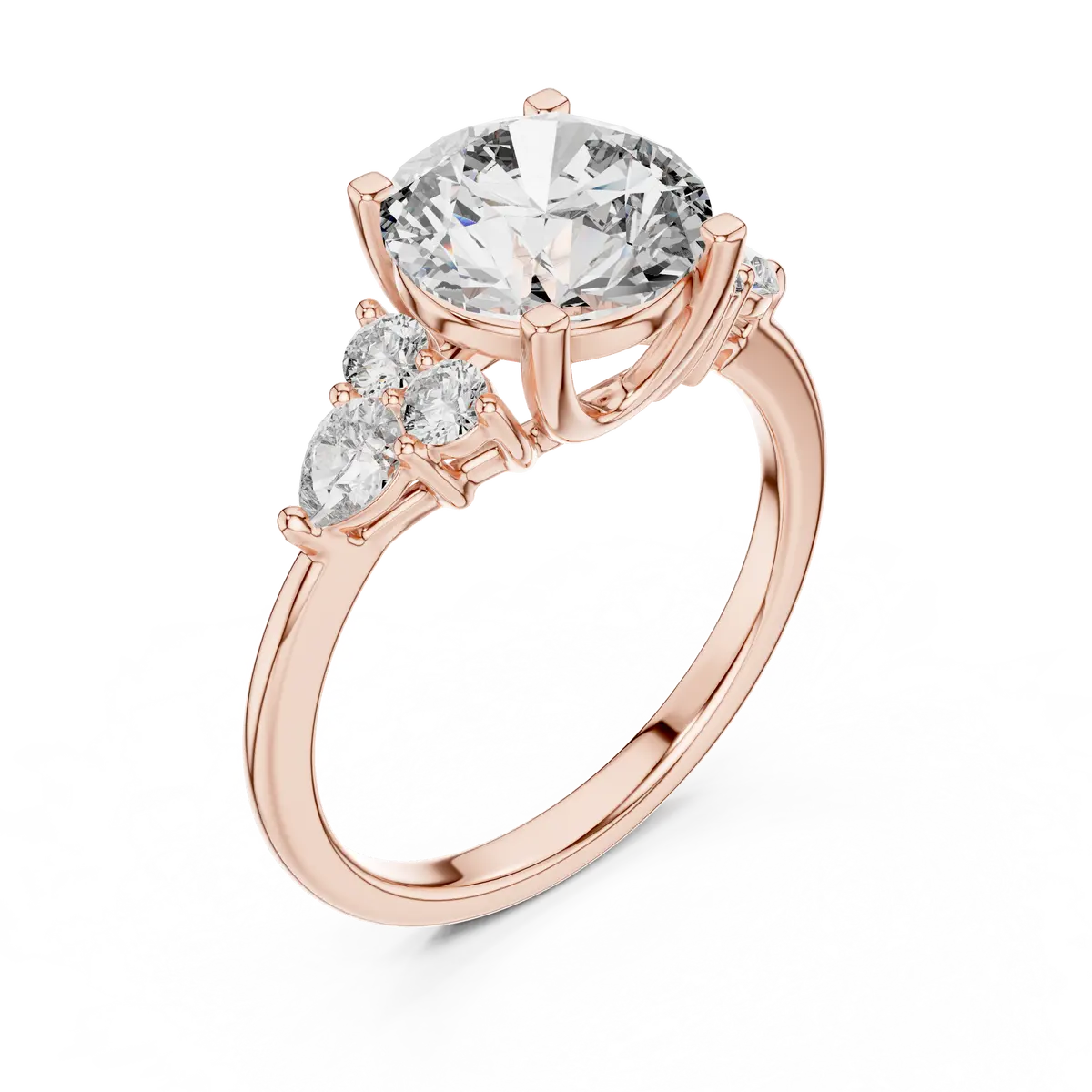 Pear Cut Diamond Ring with Floral Side Accents